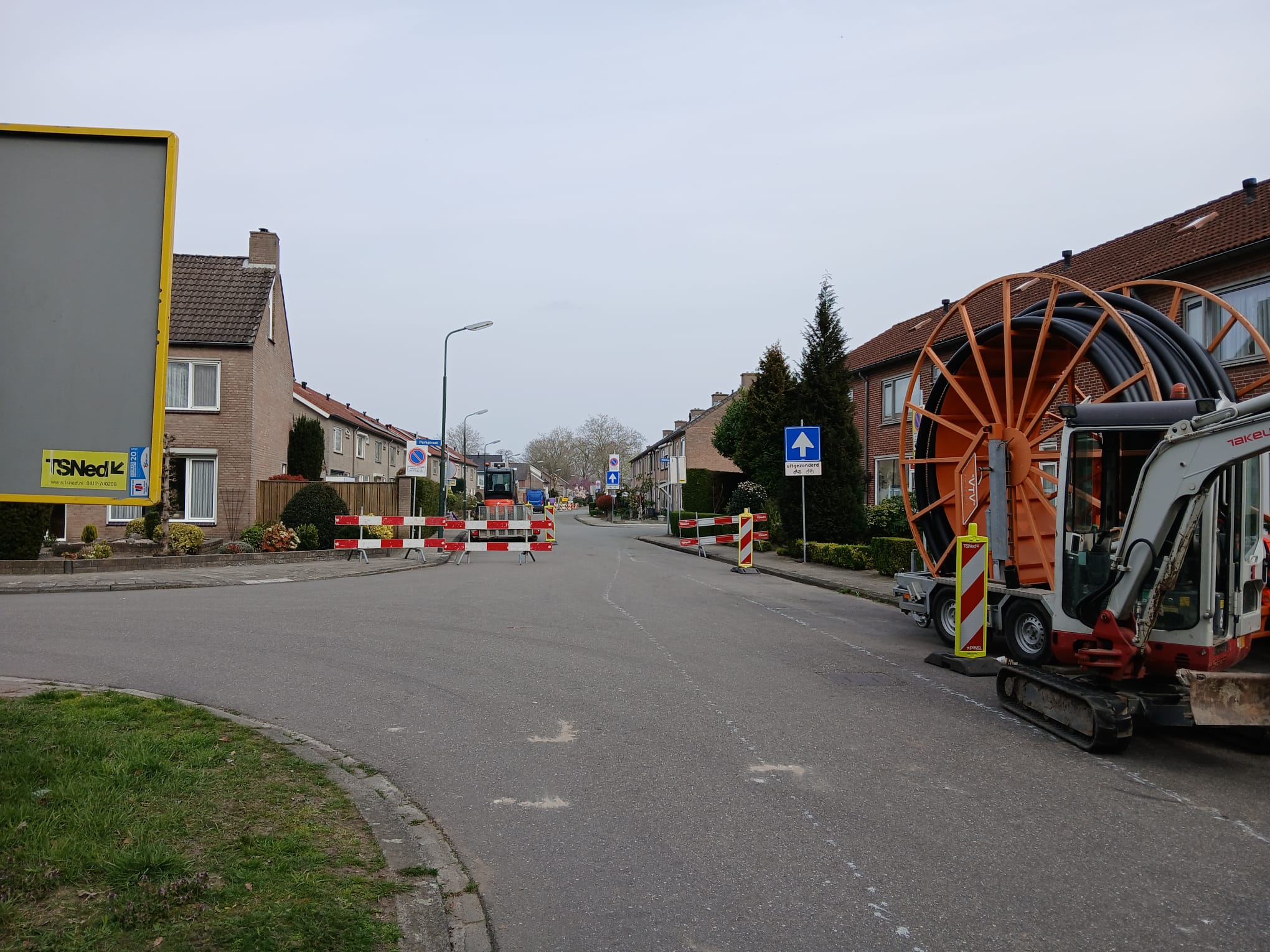 De werkzaamheden in de Antoon Coolenstraat in Gemert vorderen vlot. Op diverse plekken zijn de trottoirs opgemaakt en zijn nieuwe glasvezelkabels uitgerold. Waarom nieuwe kabels, er lagen toch al glasvezelkabels? Elke provider wenst blijkbaar zijn eigen kabel te hebben, en dus worden er kabels bij gelegd.