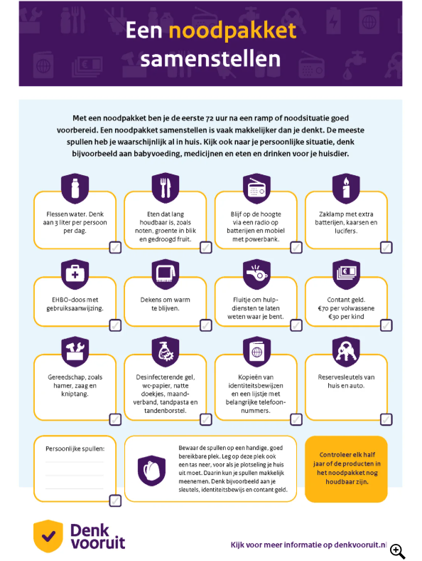 Ga voor meer informatie naar www.denkvooruit.nl/noodpakket