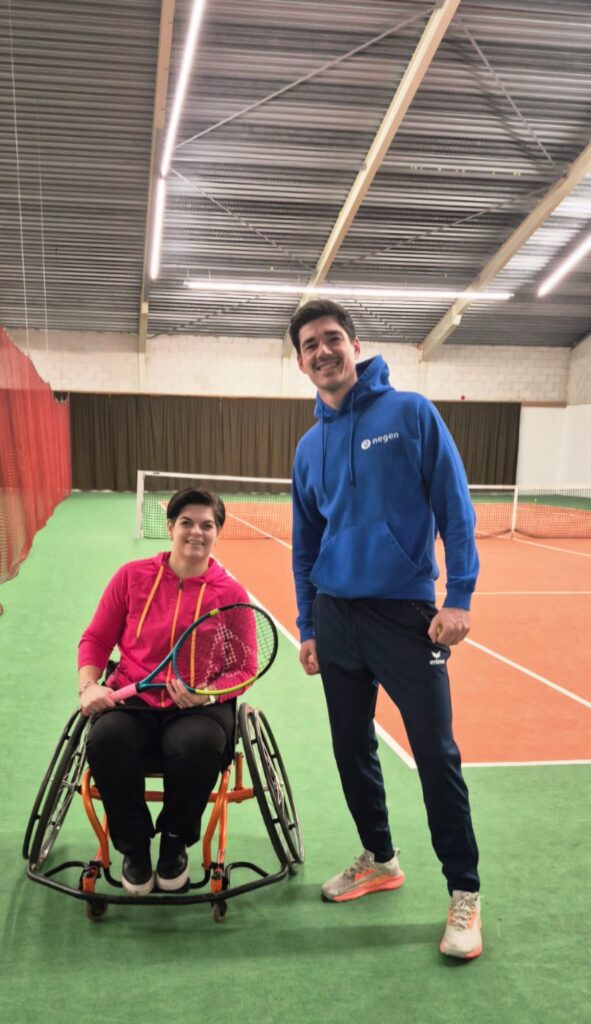 Voor de toekomst wil Elsbeth vooral blijven groeien in het tennis en misschien ooit meedoen aan een toernooi of competitie. Een eigen sportrolstoel staat hoog op haar wensenlijst. Over de begeleiding van Matijs is ze duidelijk: “Stilvallen met sporten is voor hem geen optie. Als iets niet kan, zoekt hij creatief naar een andere weg. Zo fijn om iemand naast je te hebben die ontzorgt. Dat maakt het sporten leuker!”