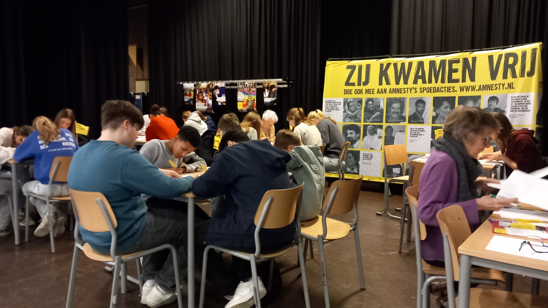 Aandacht wordt gevraagd voor mensen die slachtoffer zijn van discriminatie en achterstelling, of die vervolgd worden omdat ze zich uitspreken tegen onrecht in hun land. Er wordt ook geschreven voor bevolkingsgroepen wiens leefgebied wordt bedreigd.Naast de vele leerlingen die komen schrijven kan iedereen aan deze actie meedoen, en één of meerdere brieven overschrijven.De schrijfactie vindt plaats op woensdag 10 december tussen 9.30 uur en 16 uur in het Macropedius College, Sleutelbosch 2 in Gemert. Iedereen is welkom, elke brief telt! Meer informatie over de actie en ander Amnestynieuws op gemert-bakel.amnesty.nl
