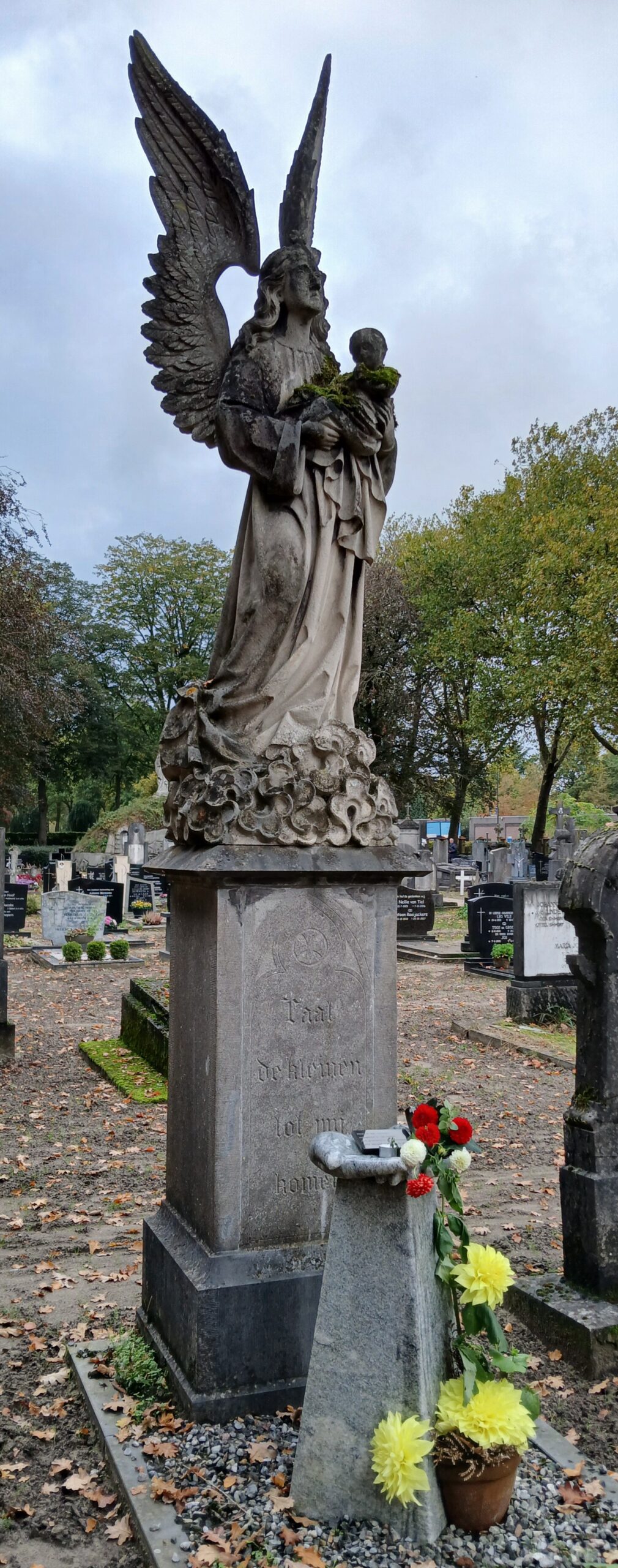 Het kerkhof verandert dan in een bloemrijke plek, met vele brandende kaarsjes. Een van die plekken is ook waar kinderen uit het verleden zijn begraven. Het monument van de engel Gabriël getuigt daarvan.