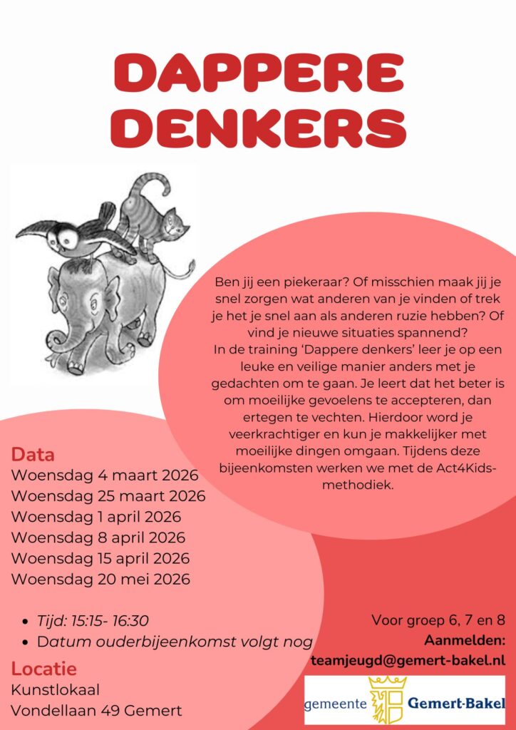 In de training Dappere Denkers leer je op een leuke en veilige manier anders met je gedachten om te gaan.