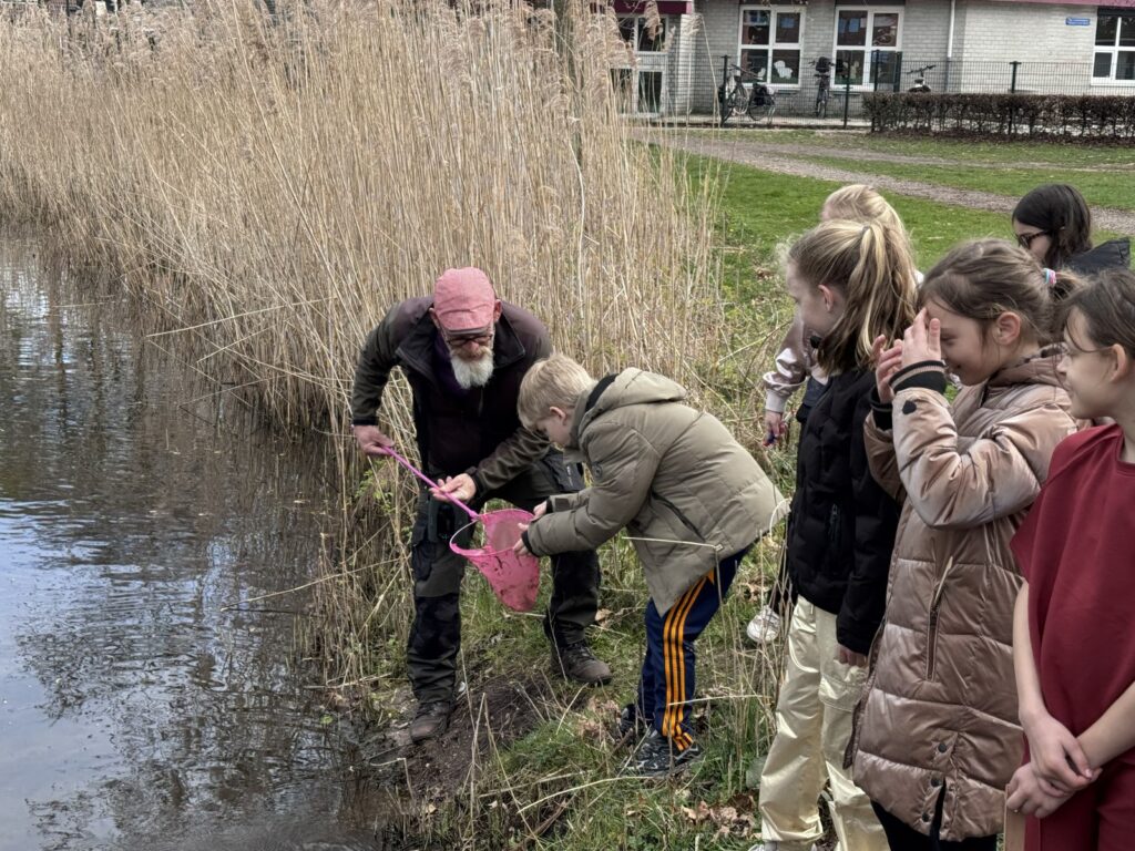 Met een schepnet gingen de leerlingen tot slot op zoek naar waterdiertjes. Ondanks enthousiast speuren werd er geen enkel diertje gevonden.