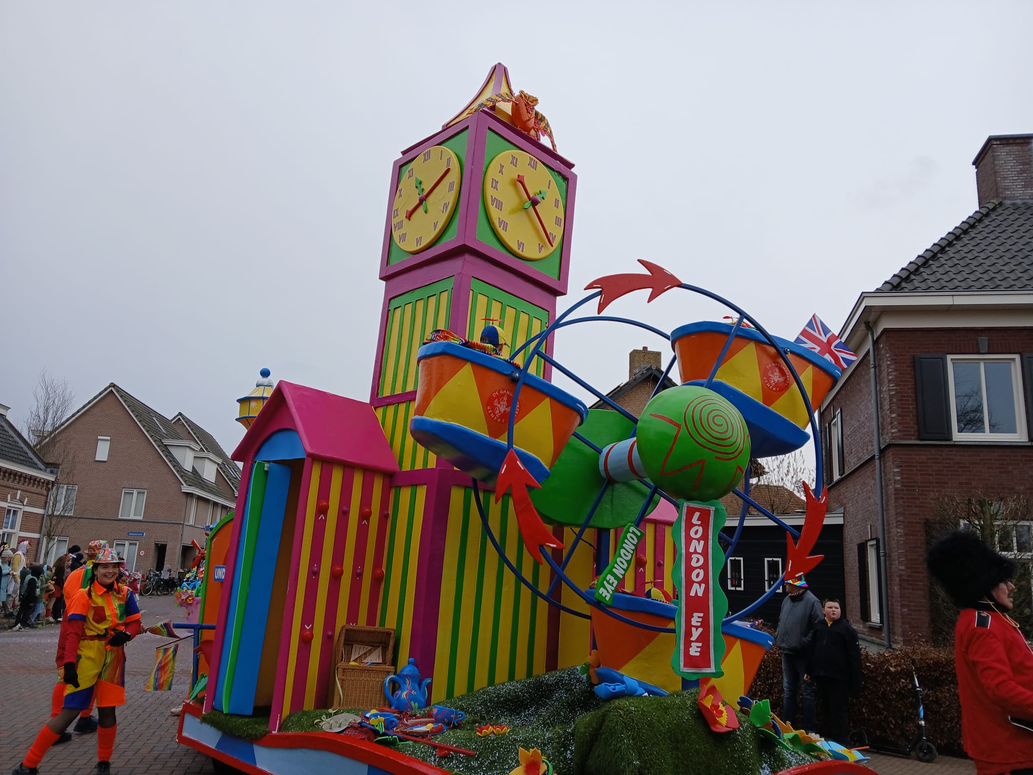 Geitje Mek met hun GEM-er(w)t, de Groeskuilen weer met een prachtig aangekleed geheel, de aliens met hun raket een vliegende schotels (Wa skaft d’n pot?), en die prachtige serie van de Gangmakers: Geweldig Oit Zicht met Pisa, Londen, Parijs in kleur, er was genoeg te bekijken! We verheugen ons ook al op de volgende optochten in de diverse kerkdorpen!