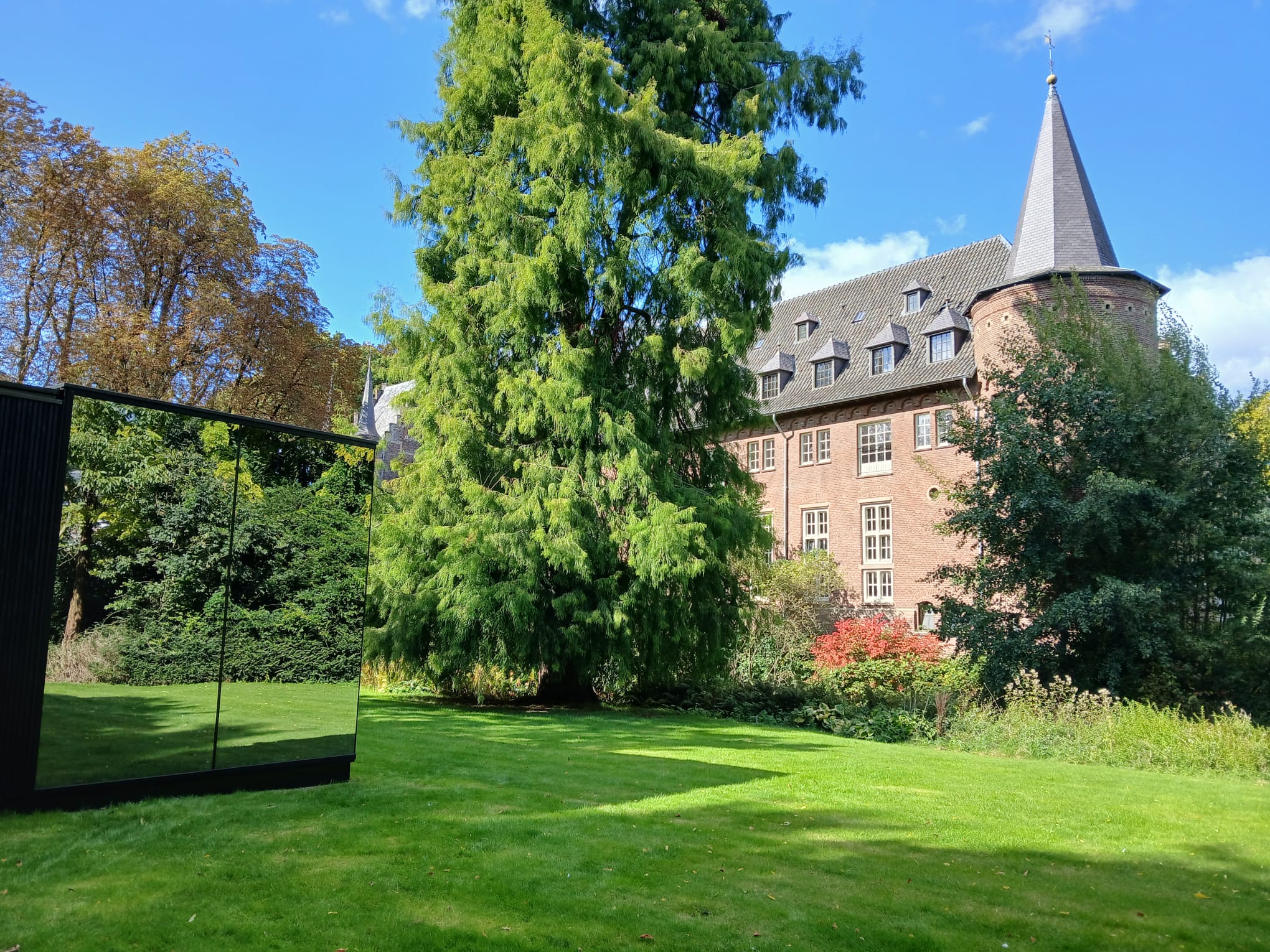 Even terug en rechtsom de kasteeltuin in. Tot aan de Vredesmaagd konden we wandelen. Daar waren tuinmannen druk bezig de omgeving van de Vredesmaagd netjes te maken voor Veteranendag a.s. zaterdag 27 september. Nog even door de raampjes van restaurant GEM naar binnen gegluurd en toen zijn drie van ons via Schoorswinkel teruggewandeld naar de speeltuin.