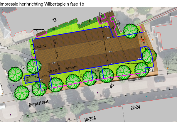 - Parkeerplaatsen op het plein: de parkeerplaatsen worden met dichte bestrating aangelegd, in plaats van met grasstenen. De dichte bestrating past beter bij de omgeving. Door intensief gebruik van de parkeerplekken komt de groene uitstraling van grasstenen onvoldoende tot z’n recht. Ook zijn grasstenen minder geschikt als ondergrond voor evenementen.